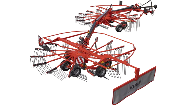 Os enliradores GA 6632+, GA 7932+ e GA 9032+ de rotor duplo entregam leiras laterais. A forragem é recolhida em uma largura de 6,50 ma 8,80 m. São ideais para operações intensivas graças à sua caixa de transmissão MASTERDRIVE GIII.