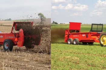 Os distribuidores com descarga traseira PS 235 e 242 da KUHN ®, são uma opção acessível para produtores, sem deixar a desejar na qualidade do equipamento. Com capacidades de 9,9 e 11,9 m³, essas máquinas são ideais para leiterias e confinamentos de menor porte, cujo trabalho requer uma ampla gama de materiais semissólidos e sólidos. Uma estrutura de chassi soldado totalmente de aço e um piso de polietileno em duas partes compõem essa máquina que foi construída para durar. Escolha entre os batedores horizontais, verticais VertiSpread® ou a descarga por discos AccuSpread® conforme as necessidades de distribuição orgânica de sua operação. Além da altura de carregamento baixa, esses distribuidores são fáceis de manobrar pela fazenda e permitem o uso mais eficiente de esterco com capacidades excepcionais de espalhamento e dosagem.